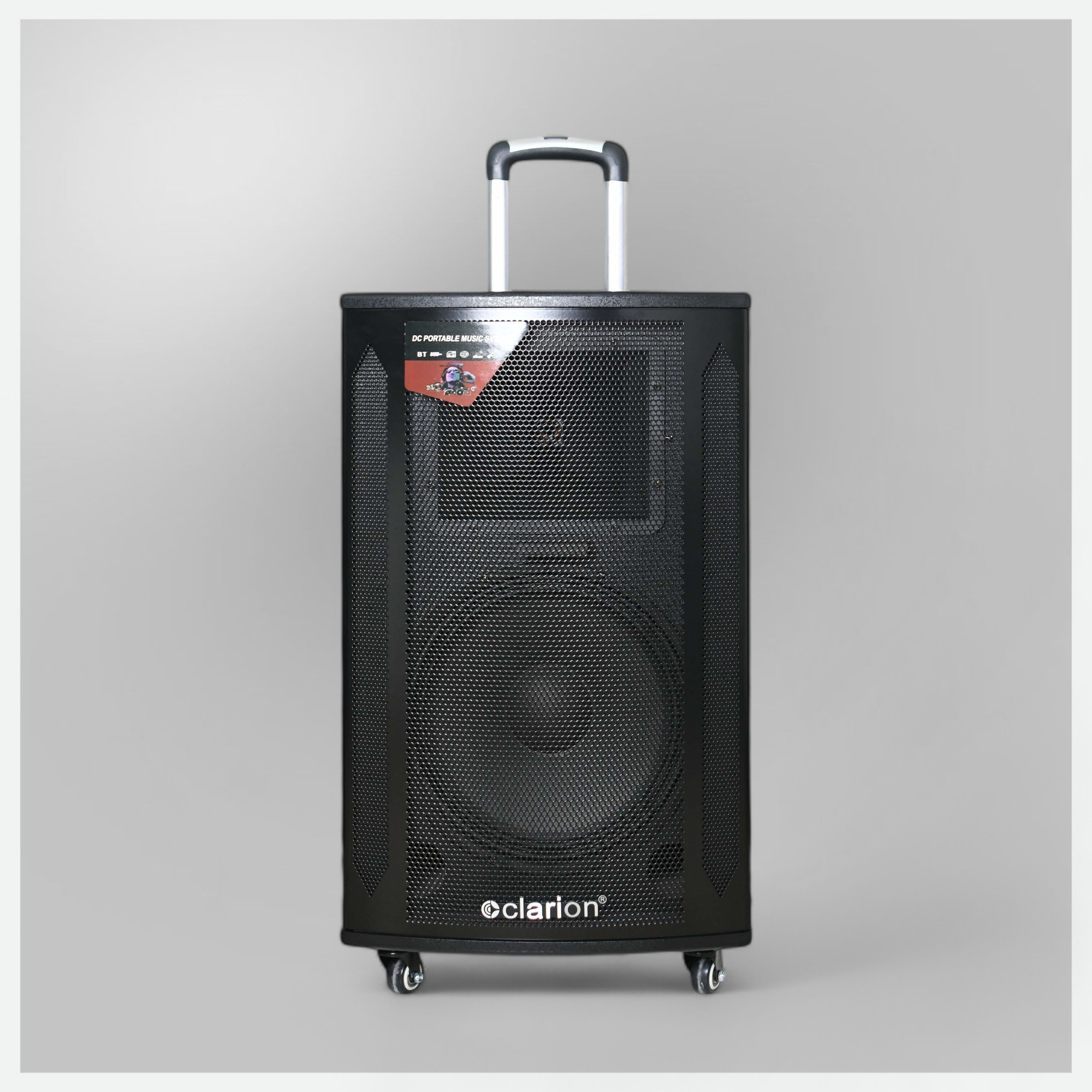 clarion® presents, JM-WOODBURN-12, 80W Power, KARAOKE READY DJ Music System, with 15inch Woofer Drive, BT, USB/SD supported Remote operated, sound profound experience with 2 UHF MICs, Guitar Input & Recording Function.