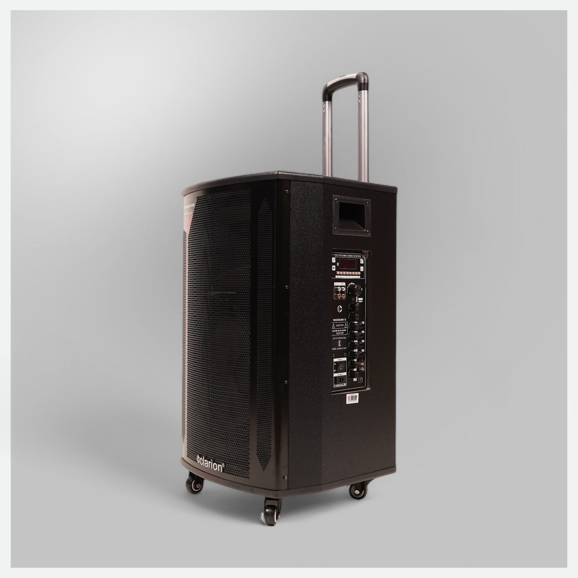 clarion® presents, JM-WOODBURN-12, 80W Power, KARAOKE READY DJ Music System, with 30.48 CM Woofer Drive, BT, USB/SD supported Remote operated, sound profound experience with 2 UHF MICs, Guitar Input & Recording Function.